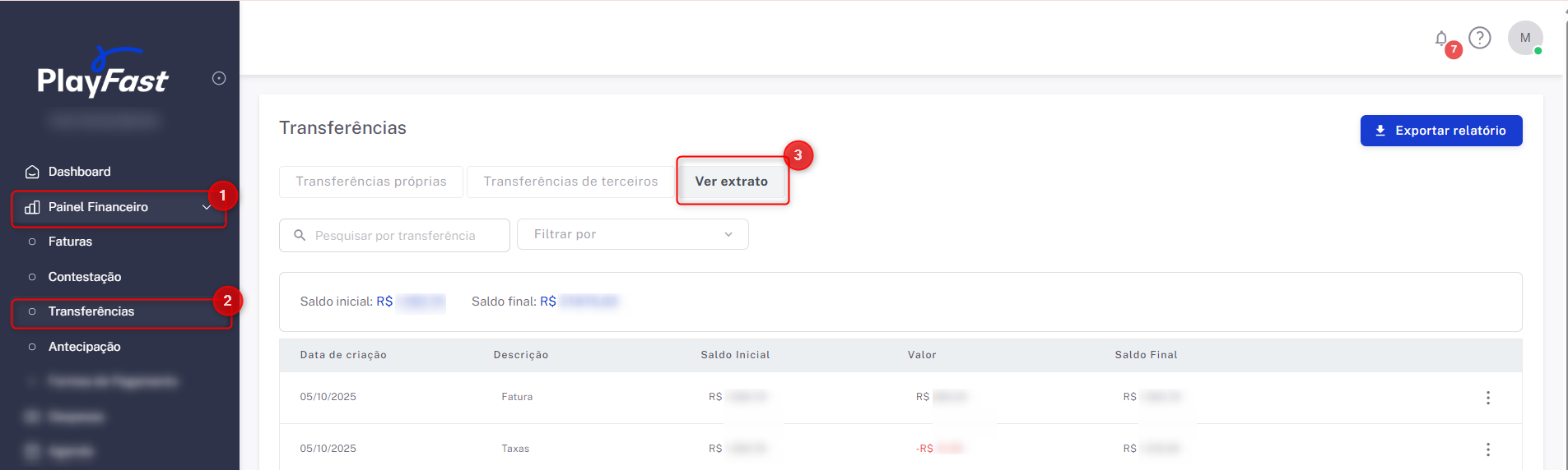 O extrato de transferências é uma funcionalidade que exibe o histórico detalhado de todas as movimentações financeiras da sua conta Play Fast.