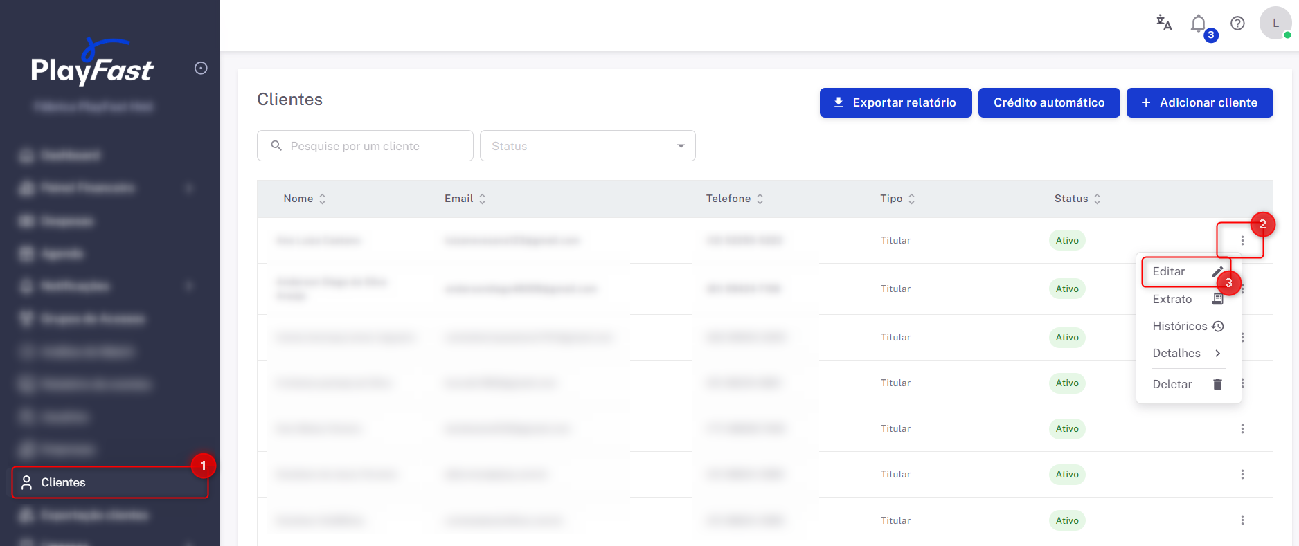 A edição de um cliente é o processo de atualizar informações já registradas no sistema PlayFast, garantindo que o cadastro permaneça correto, alinhado à realidade e às regras de uso da unidade.