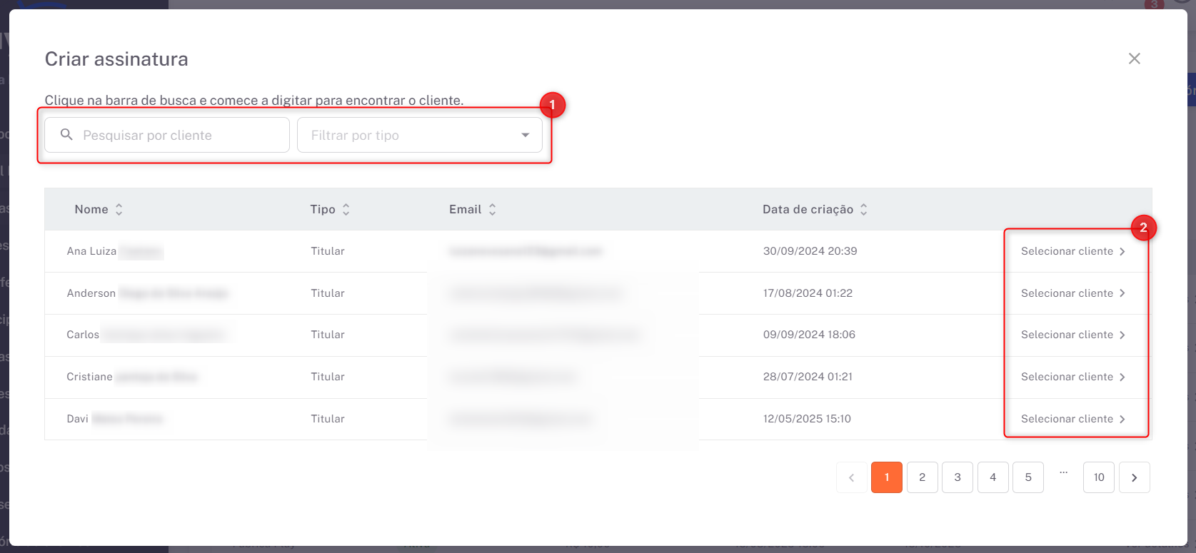 - Assinaturas: são exibidas a listagem de assinaturas dos clientes