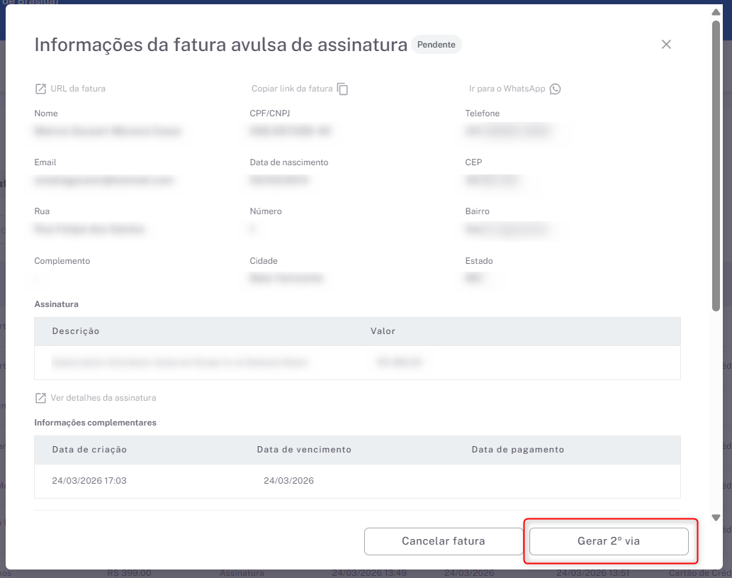 Ao gerar a segunda via: