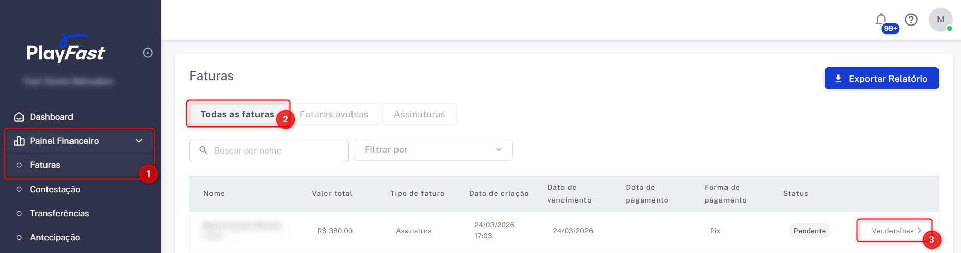 Acesse o menu Financeiro