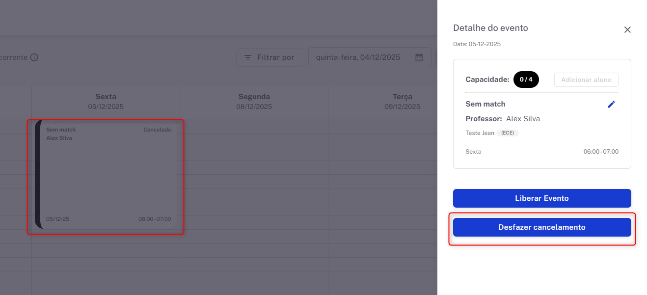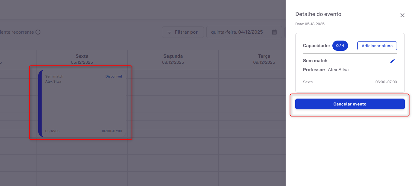 Com recursos completos — como edição, cancelamentos, inserção de alunos, relatórios e exclusões — o gestor tem total controle sobre a programação da unidade, garantindo eficiência operacional e uma experiência fluida para clientes e professores.